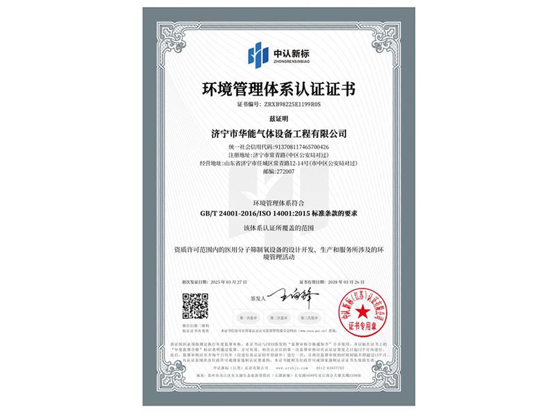 環(huán)境管理體系認證證書